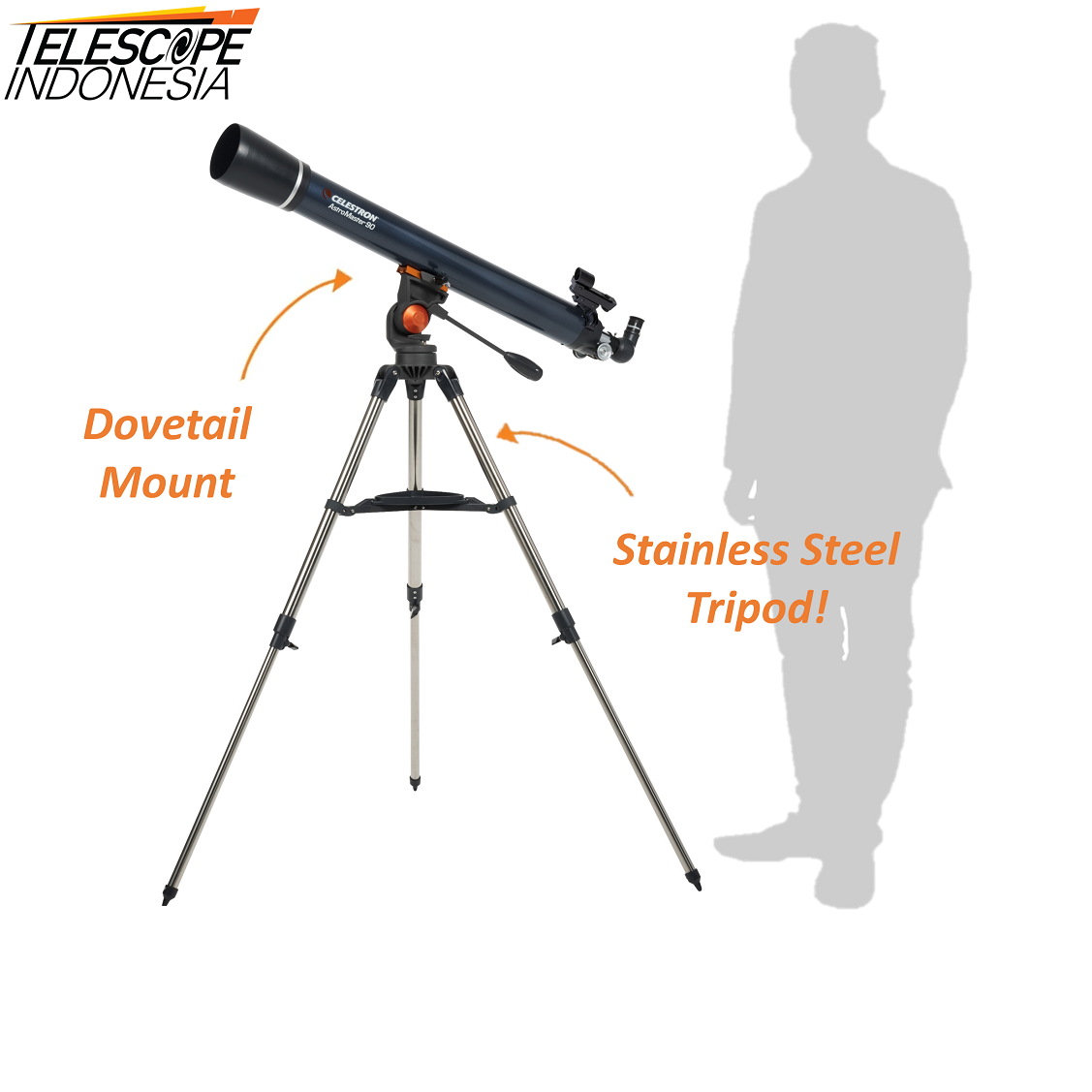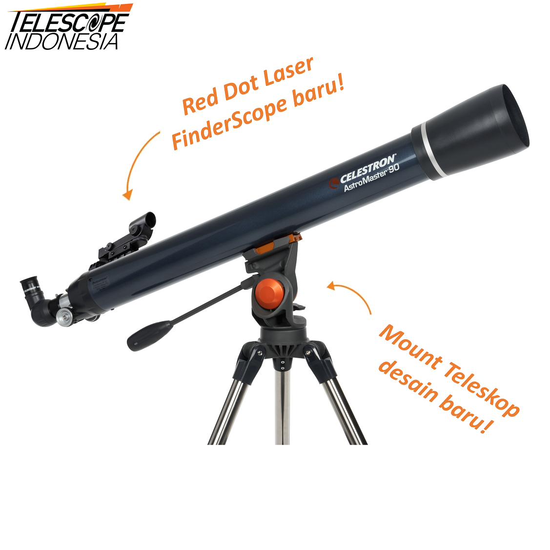 - Teleskop refraktor 90mm dengan lensa berlapis coating dan tabung yang ringan.